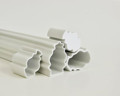 Inspiriert von traditionellen Handwerkstechniken der dekorativen Raum- und Fassadengestaltung, basiert diese Arbeit auf der typischen Erstellung von Gipsprofilen, wie sie noch heute von Stuckateuren verwendet wird. Durch die Kombination zweier aus Gips gezogener Profilleisten wurden Objekte mit einer neuen Formsprache gestaltet. Hierbei erinnert die langgezogene Form an die ursprüngliche Zierleiste, während die Gefäßöffnung das eigentliche Profil preisgibt. Die strenge Linienführung wird durch das Licht- und Schattenspiel der Flächen besonders unterstützt.